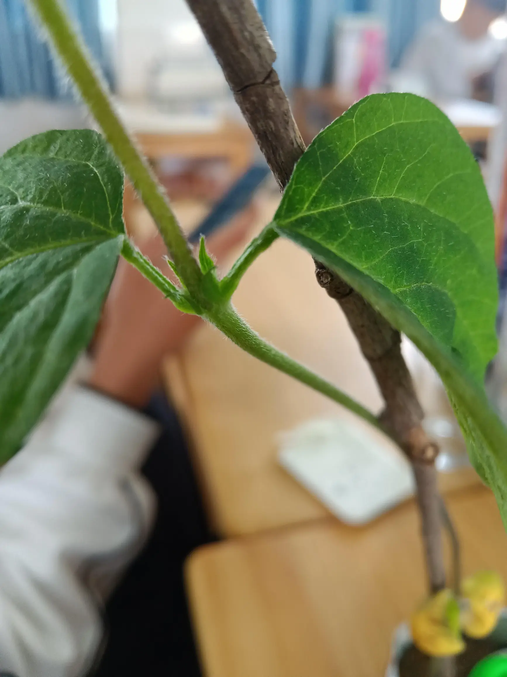 此时植株长得比较高了,容易倒伏,同学 C 带来一根小木棍来支撑。