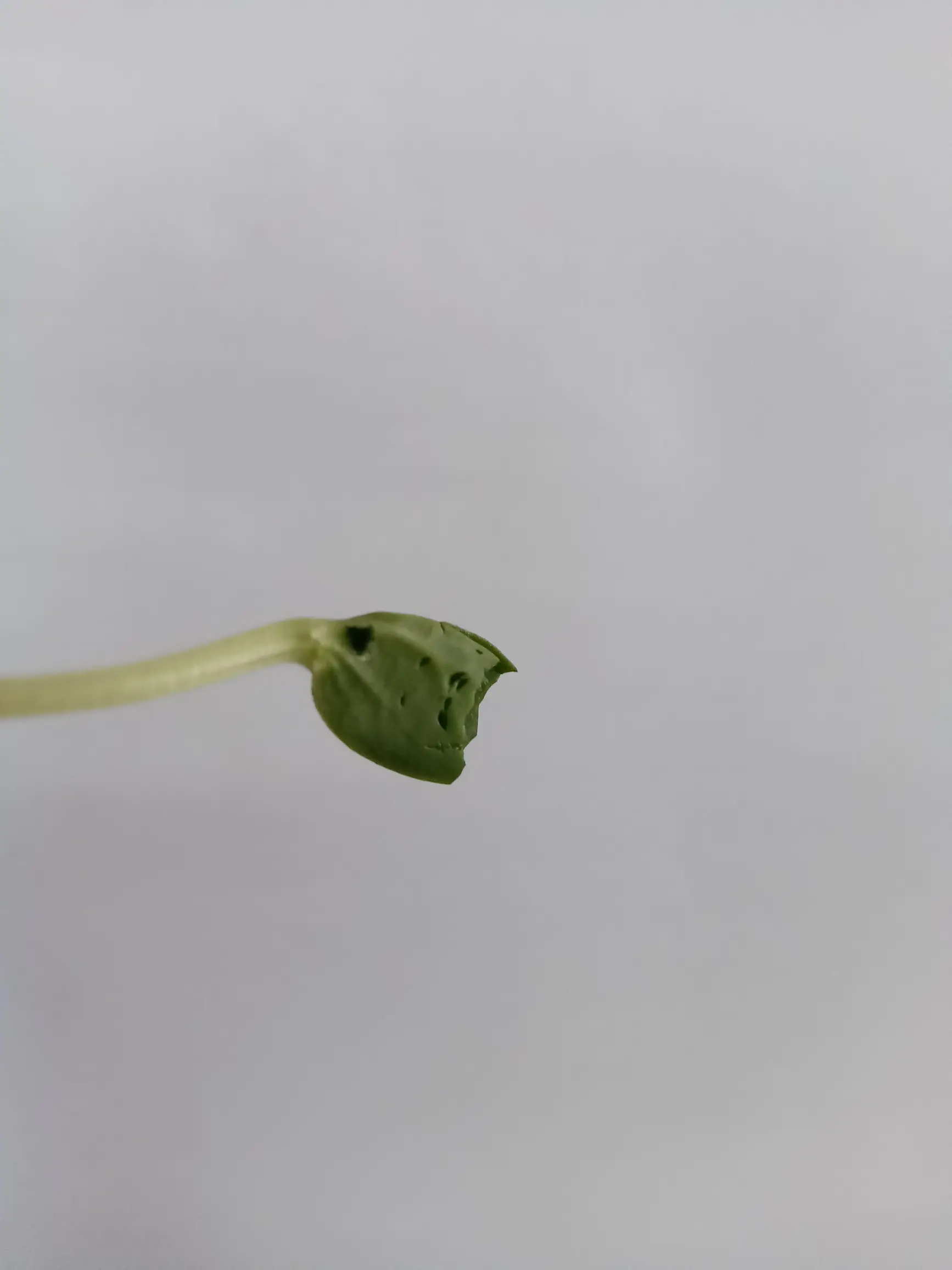 岂可修!不知道是什么生物干的,第二株的子叶被咬了,不过鉴于几周换座位之前,我们现在所在的位置出现过蟑螂,加上这种大小的齿印,我猜测是蟑螂干的,不过似乎不是很好吃,咬了一半。
